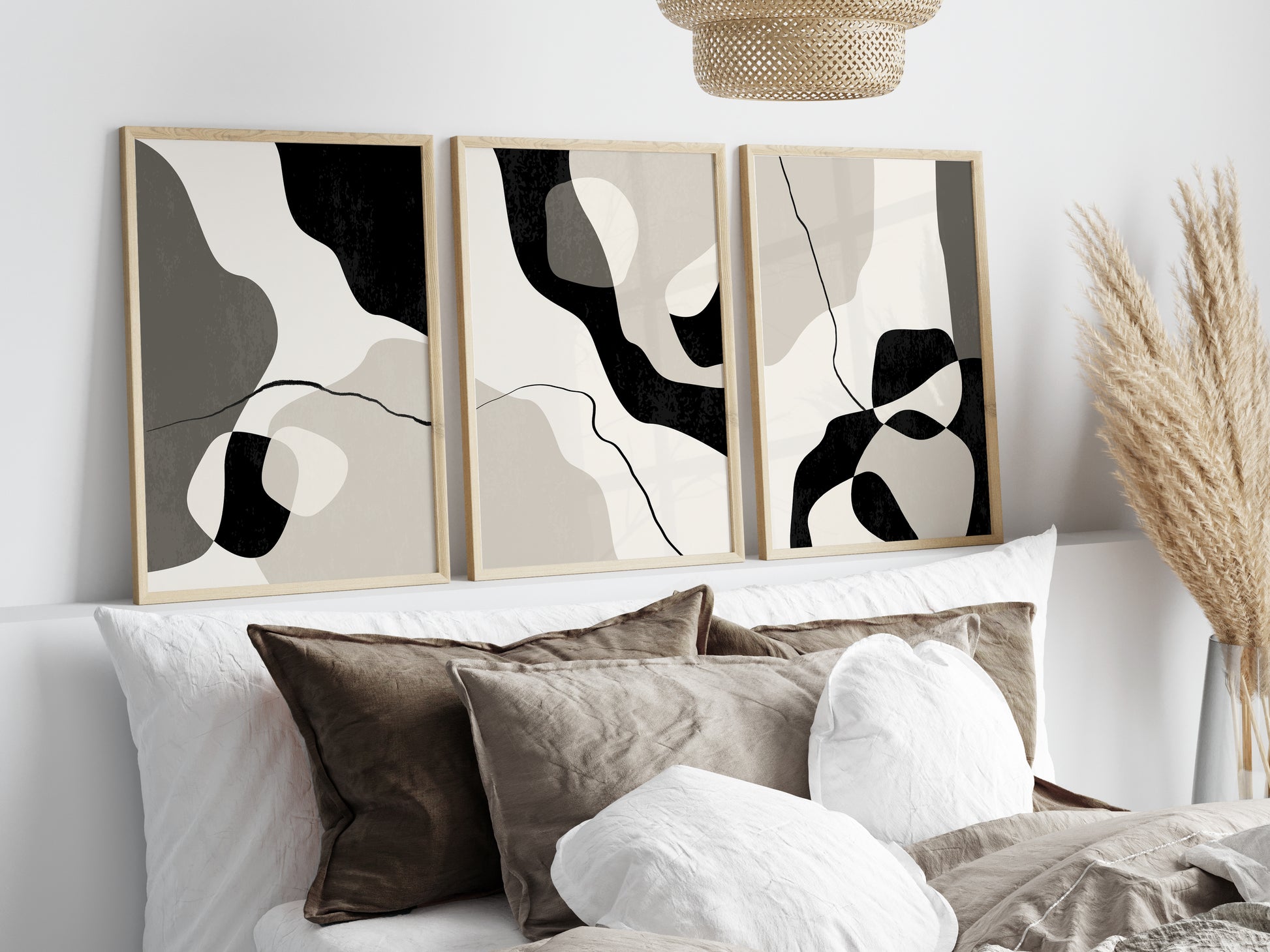 Set of 3 Taupe Abstract Wall Art Prints