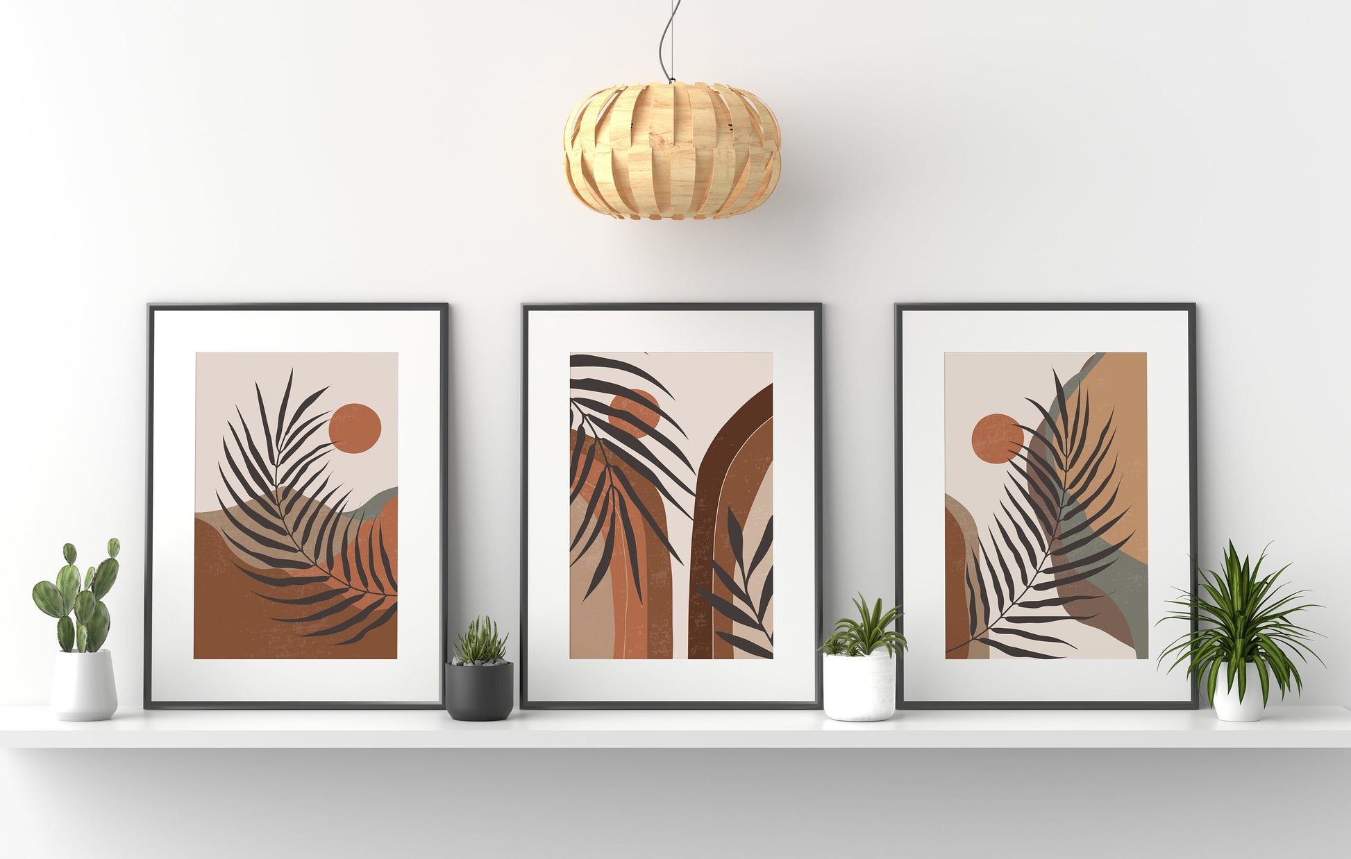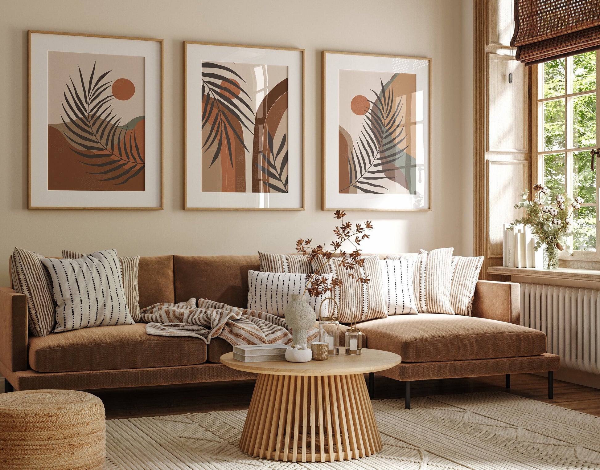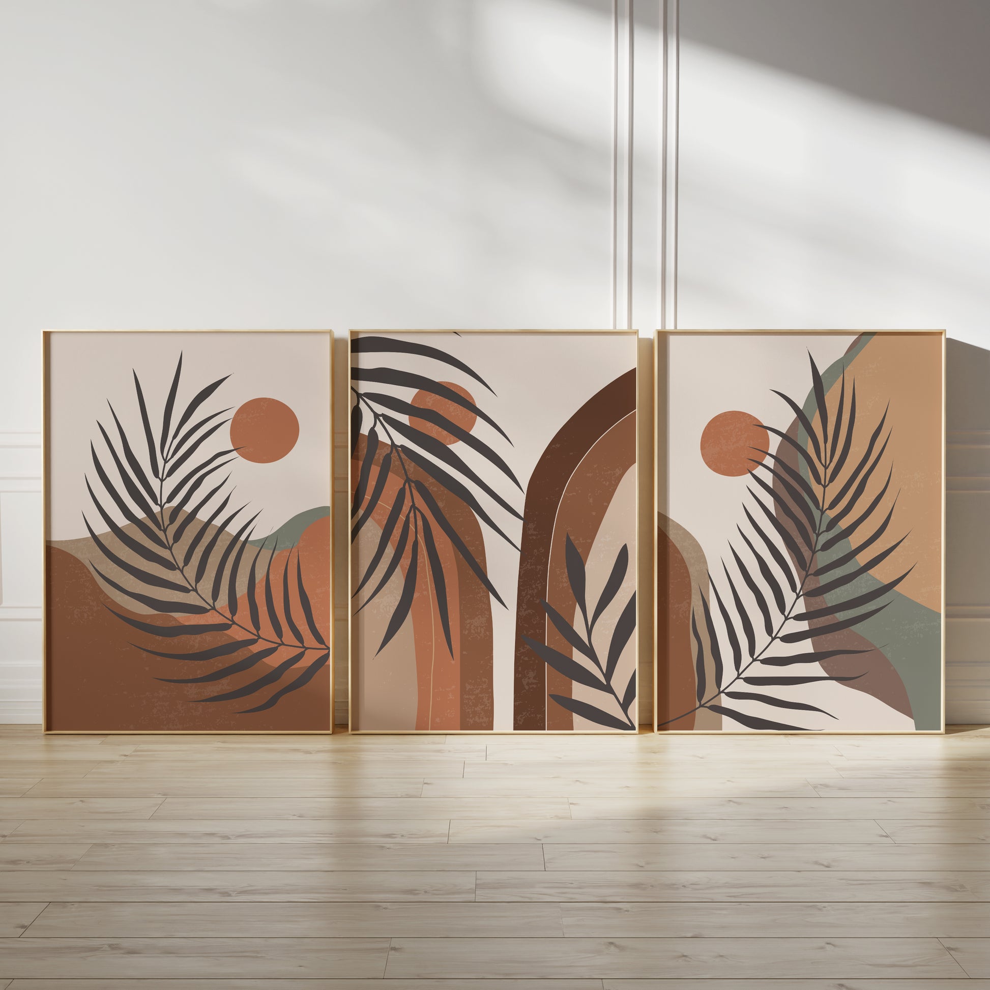Set of 3 Terracotta & Brown Boho Abstract Wall Prints