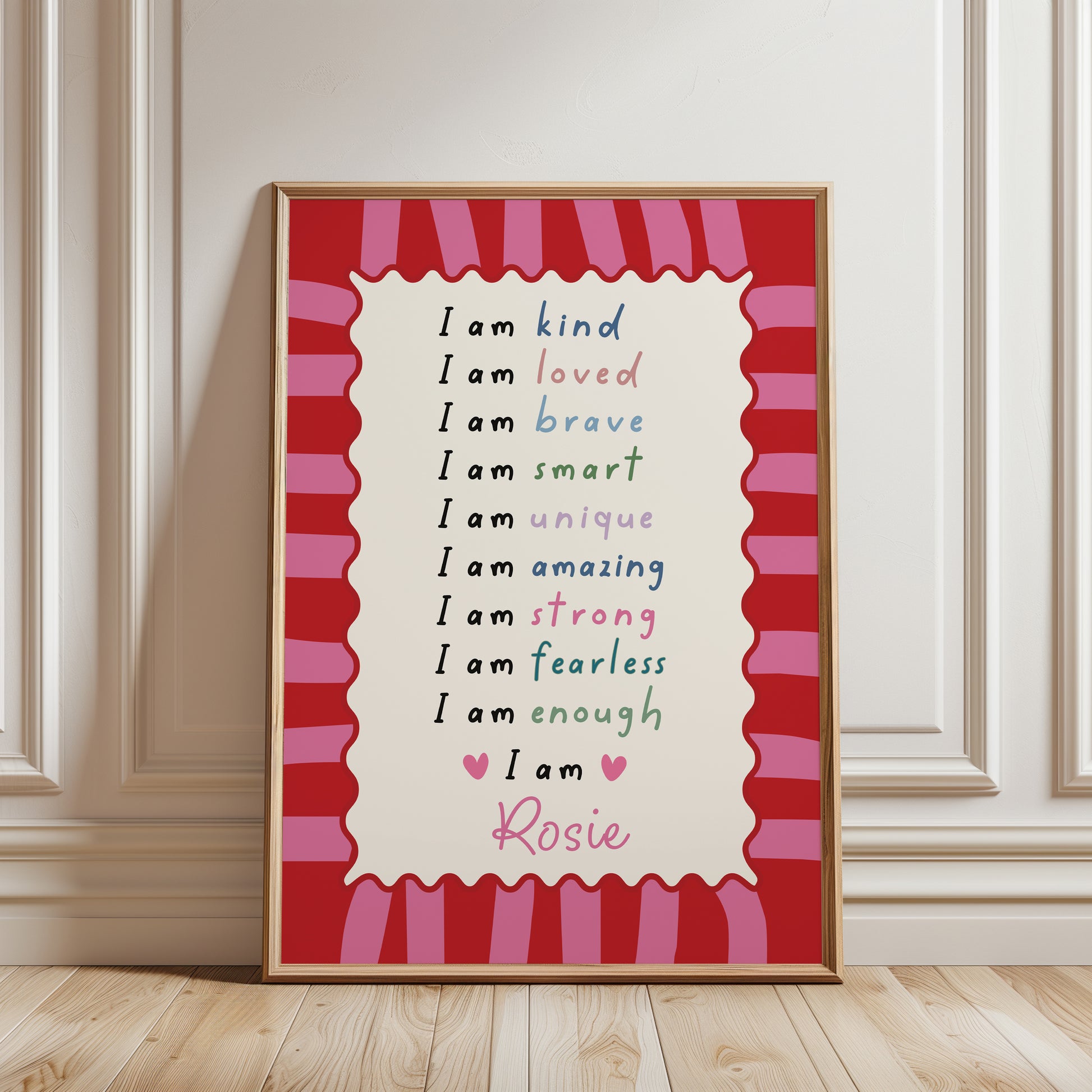 Kids affirmation print, available in 6 colours. Giclée print, printed onto fine art matt archival paper using fade resistant inks for a beautiful finish.